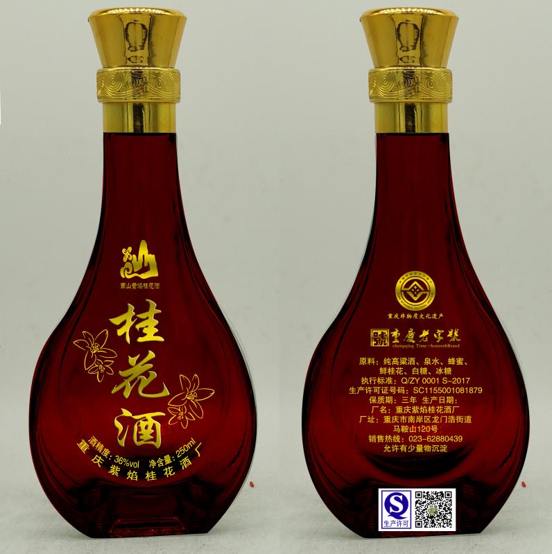 重慶紫焰桂花酒廠成立于1993年,位于長(zhǎng)江上游的重慶南山。重慶南山的氣候宜人,山下有名泉,紫焰桂花酒取南山之桂花,涂山之泉水,精心釀制而成。酒廠主要生產(chǎn)、銷售“賈紫焰”牌桂花酒系列產(chǎn)品,重慶最具特色的桂花酒,是重慶老字號(hào)產(chǎn)品,被列入重慶市非物質(zhì)文化遺產(chǎn)名錄。